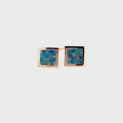 Australian Square Opal Cufflinks (Green Shiny Rose Gold)