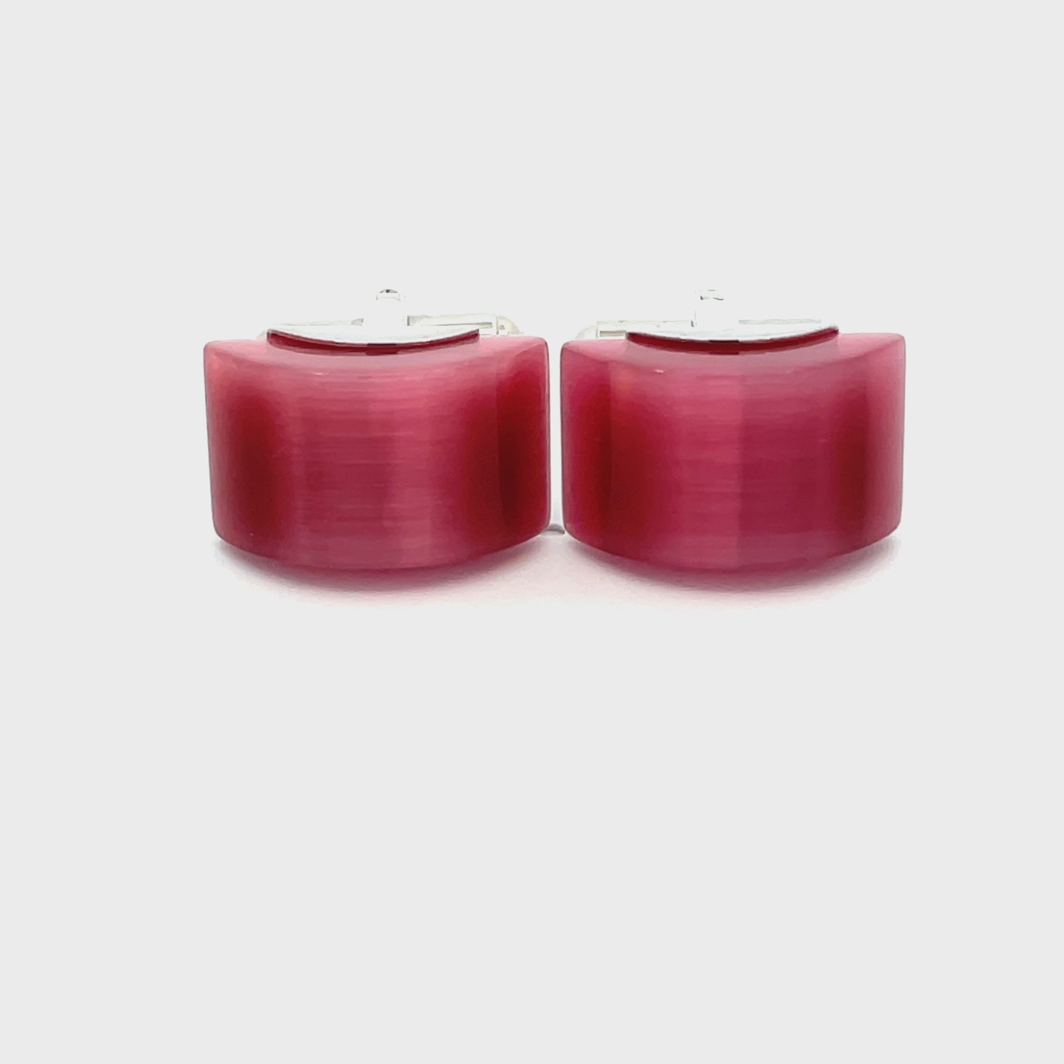 Add a sleek touch of colour to your cuffs with these Pink Catseye Arch Cufflinks. Featuring a smooth, curved design and a rich, lustrous catseye finish, these cufflinks strike the perfect balance between bold and elegant. Ideal for weddings, formal events, or anyone looking to elevate their style with a pop of pink. Finished shiny rhodium plating.
