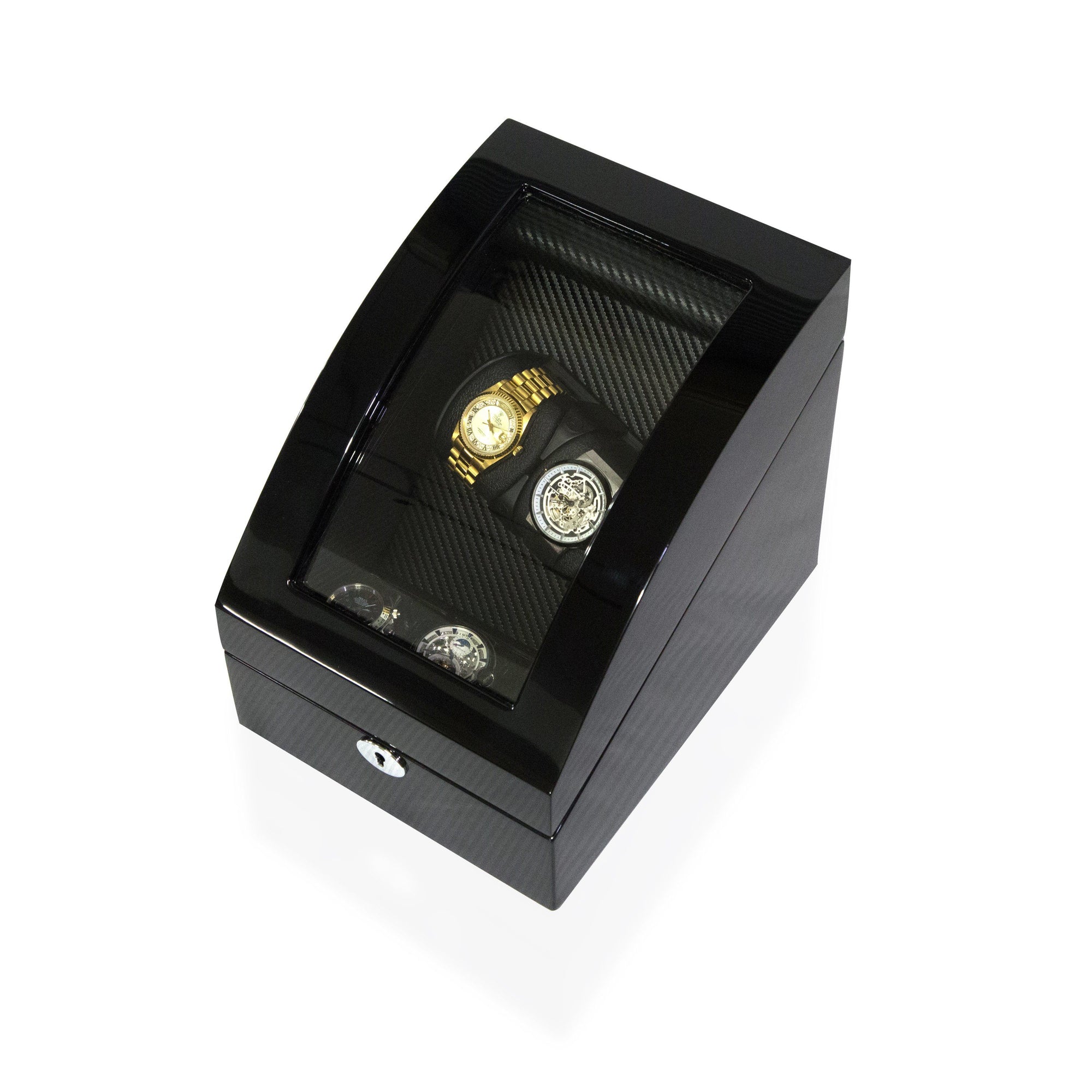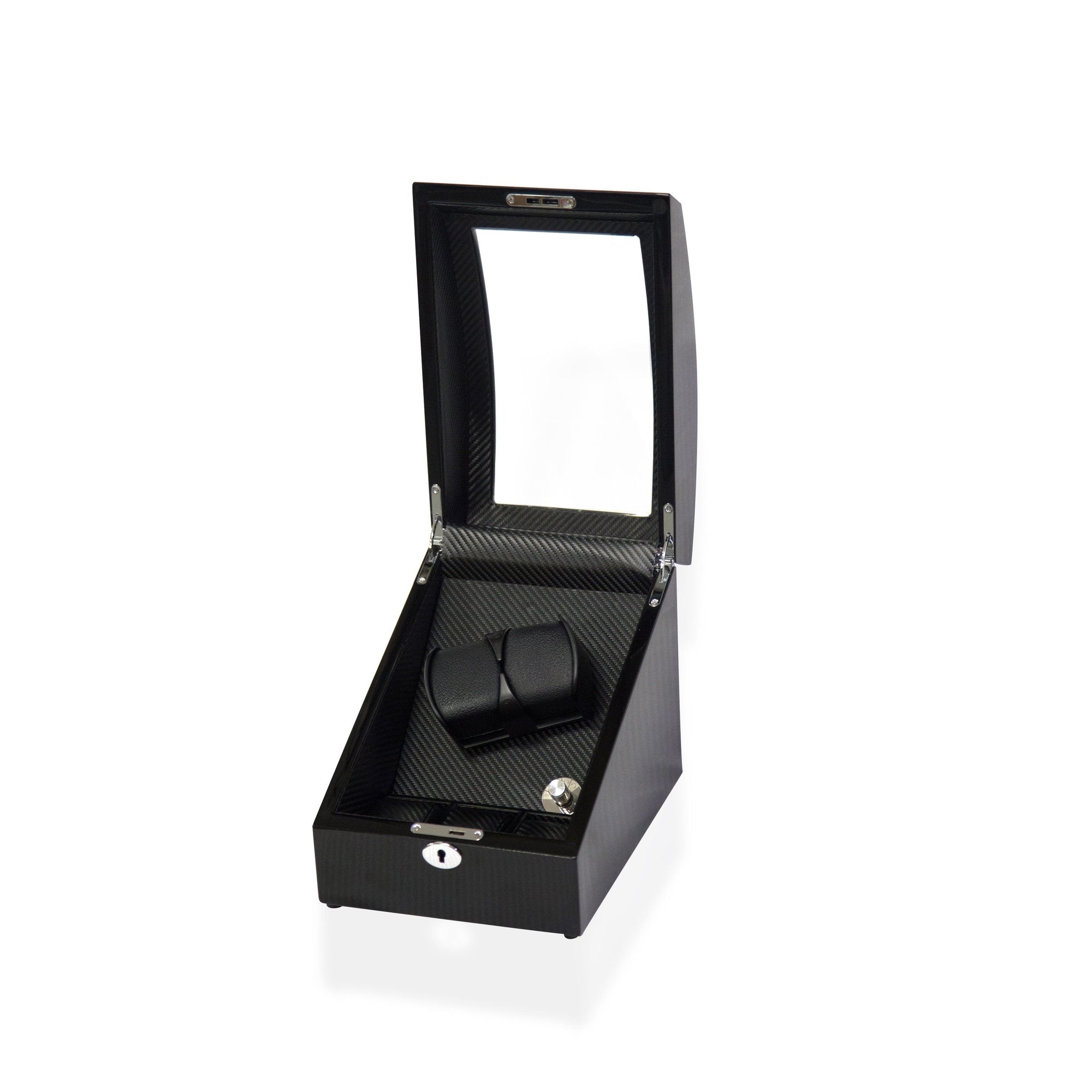 This mechanical box keeps your automatic watches wound and ready to wear. This box has a capacity for 2 watches on a winding rotorand storage space for an additional 3 watches.
