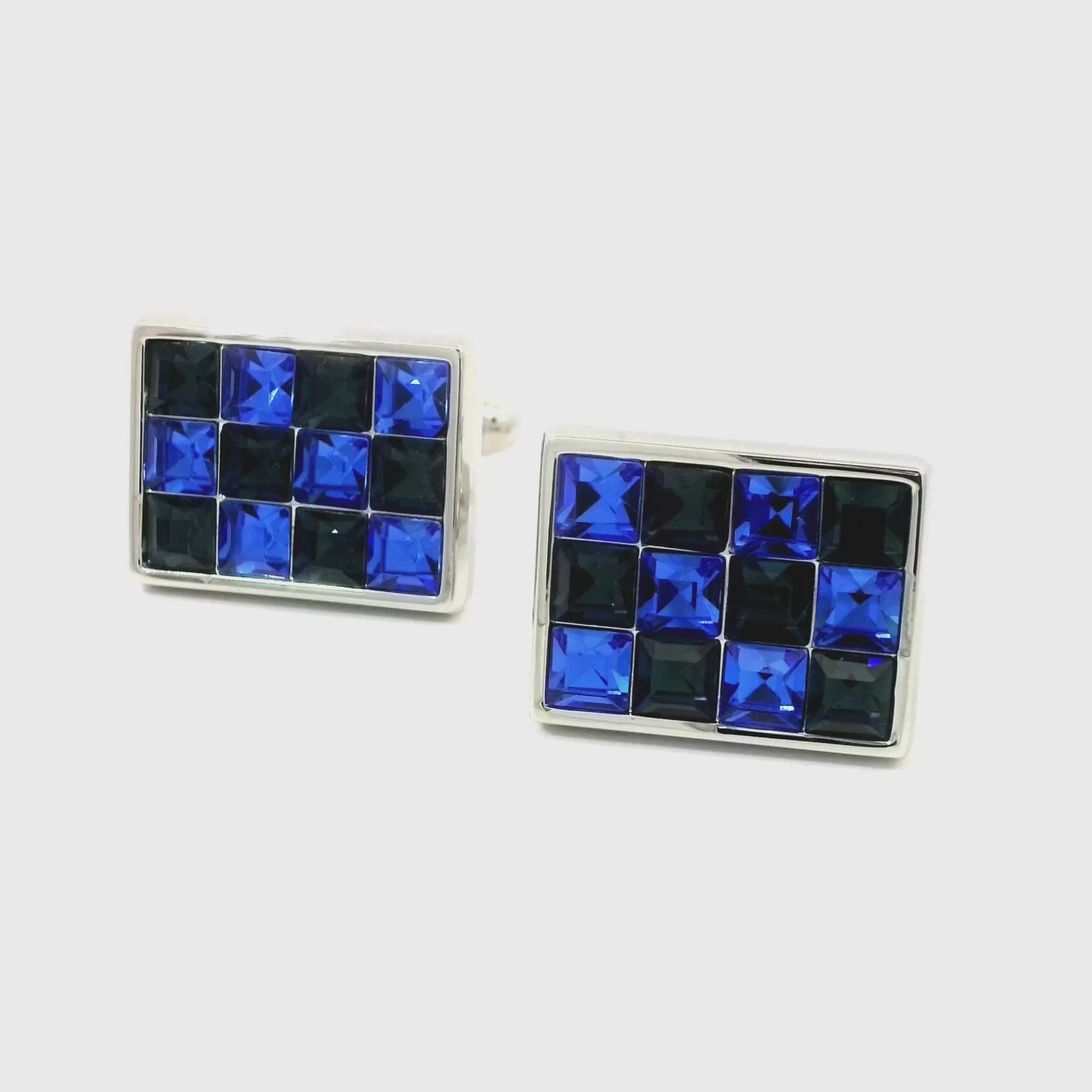 A dazzling addition to your accessory collection. These Black Blue 12 Crystals Cufflinks feature blue and white crystals in an alternating pattern and are set in a silver rectangle frame with a bullet backing, sure to spark conversations wherever you go. Whether you're attending a gala, a corporate event, or a wedding, these cufflinks are sure to make a statement and add a touch of refinement to your look.