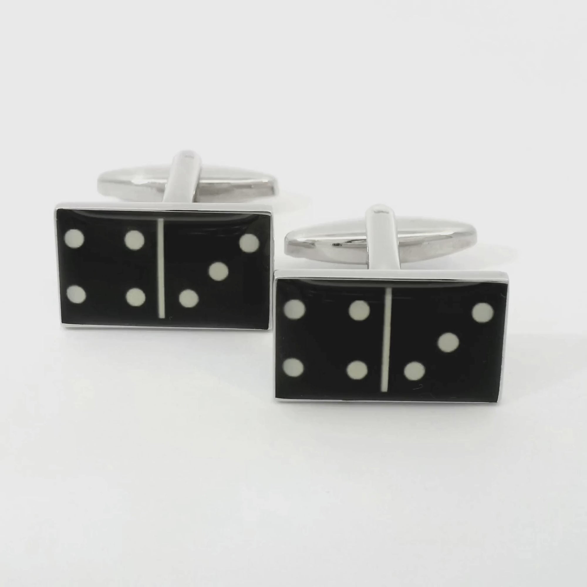 Where classic gaming meets sophisticated style. Made with high-quality materials, these cufflinks are rhodium-plated featuring a domino game piece in an enamel finish. Whether you're a lover of games or simply appreciate distinctive fashion, these Black Dominoes Cufflinks are sure to make a statement.