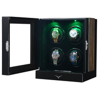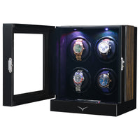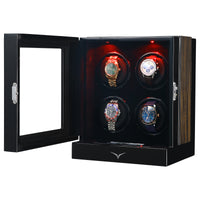 This automatic watch winder box keeps your automatic watches wound and ready to wear. This box has the capacity for 2 watches on the 2 winding rotors.