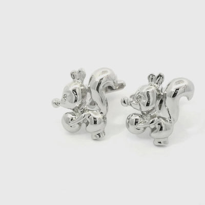 A delightful fusion of whimsy and sophistication. Crafted in shiny silver rhodium plating for enduring brilliance, these cufflinks feature adorable cartoon representations of a playful squirrel and a dainty acorn. Each detail is meticulously rendered to capture the charm of these woodland creatures, adding a touch of character and personality to any formal attire. Elevate your style with a hint of woodland whimsy and let these cufflinks spark joy and admiration wherever you go.