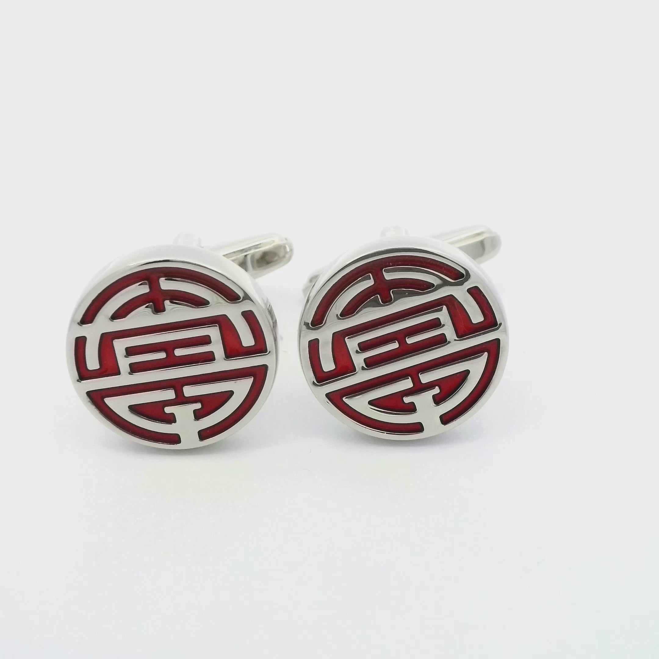 Elevate your ensemble with the timeless elegance and cultural significance of our Chinese Longevity Symbol Cufflinks. These cufflinks feature miniature replicas of the Chinese longevity symbol in red enamel, sculpted to capture its beauty and profound meaning. Symbolizing longevity, prosperity, and good fortune, these cufflinks are more than just accessories – they are powerful emblems of tradition and heritage.