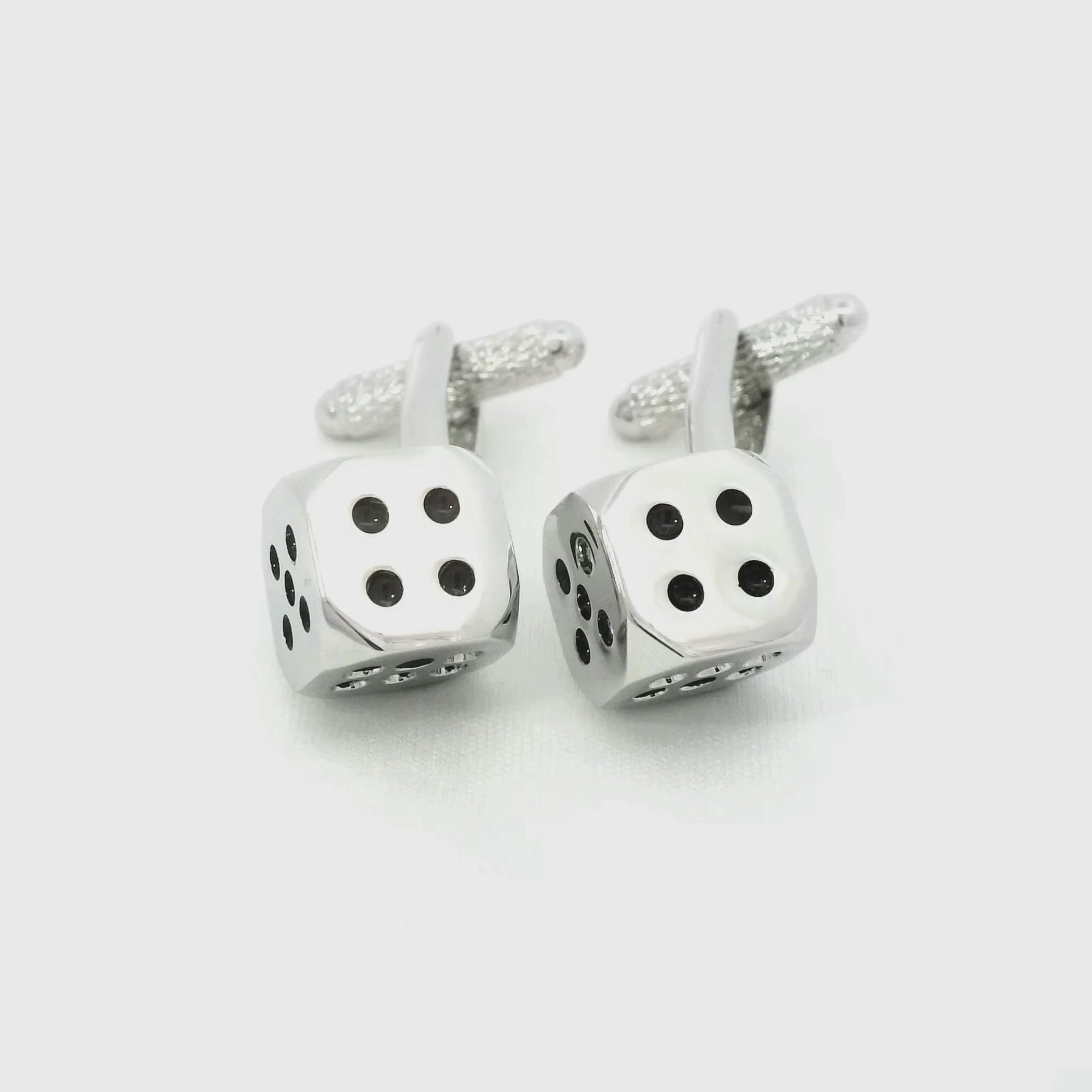 Introducing our Dice Cufflinks, a playful and stylish accessory for the modern gentleman. These cufflinks feature a miniature replica of a dice, finished in shiny silver. Showcase your love for board games and gaming with these cufflinks.