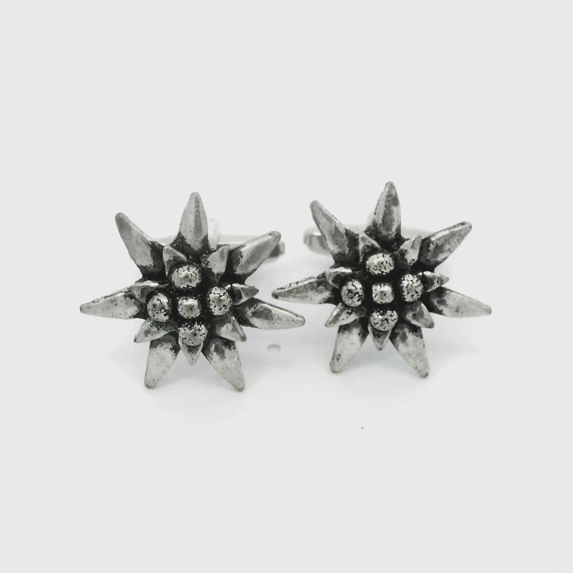 Introducing our Edelweiss Flower Cufflinks, a symbol of alpine elegance and natural beauty. These cufflinks feature miniature replicas of the iconic Edelweiss flower, finished in silver. Whether you're a nature enthusiast, a lover of the great outdoors, or simply appreciate the finer things in life, these Edelweiss Flower Cufflinks are sure to add a touch of alpine sophistication to any ensemble.