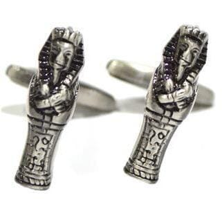 Unearth ancient elegance with these Egyptian Sarcophagus Cufflinks. Crafted with an antique silver finish and intricate detailing, they capture the mystery and grandeur of ancient Egypt. Perfect for history enthusiasts or anyone with a taste for the exotic, these cufflinks add a touch of archaeological intrigue and timeless style to your ensemble. Finished in antique rhodium plating.
