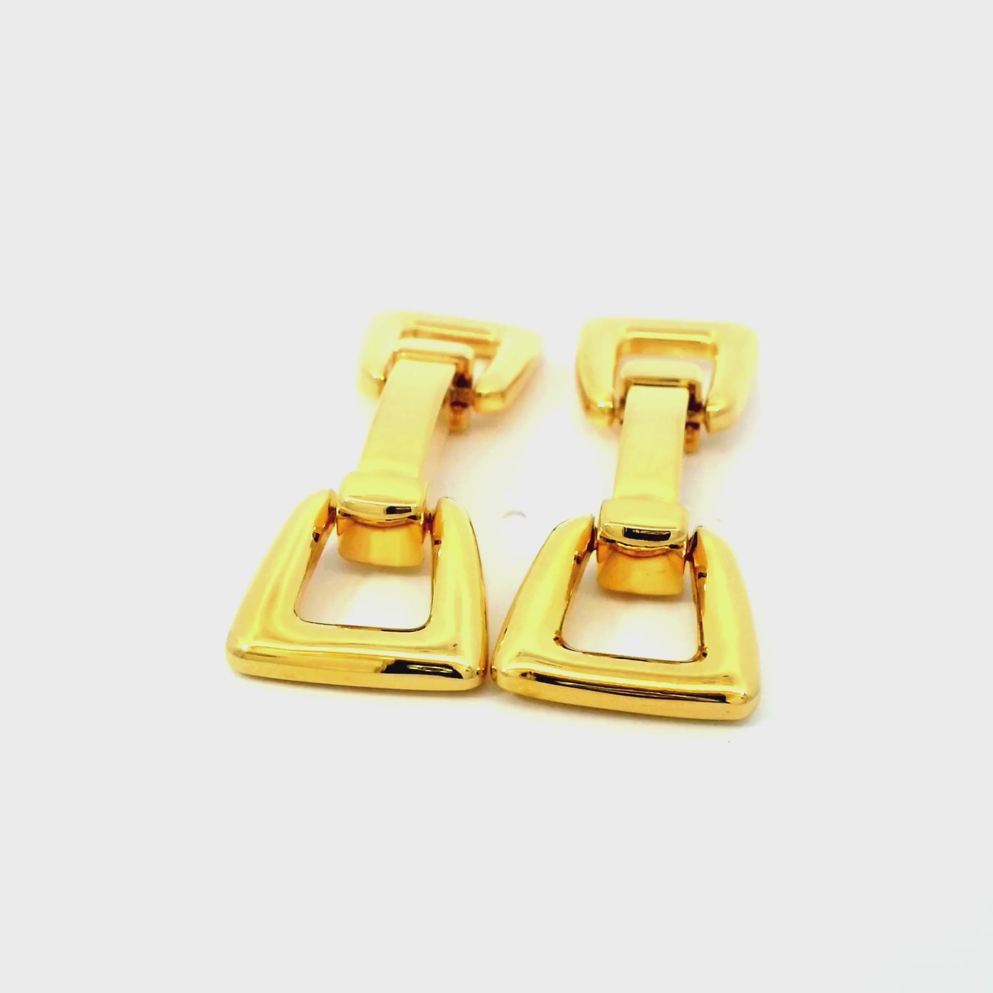 Introducing our Gilt Stirrup Cufflinks, a sophisticated accessory that captures the essence of equestrian elegance. These cufflinks are shaped in the classic form of a horse's stirrup, symbolizing both tradition and the refined lifestyle associated with horse riding. Beautifully finished in shiny gold.