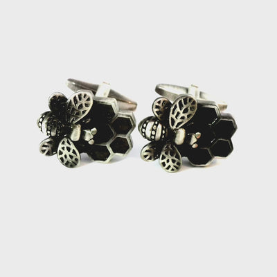Add a touch of nature-inspired elegance to your attire with these Honeycomb and Bee Cufflinks. Featuring a unique honeycomb design with a detailed bee, these cufflinks offer a stylish combination of sophistication and charm. Finished in brushed black rhodium plating.