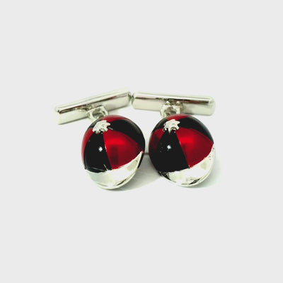 Perfect cufflinks to look the part at the races. Designed as a set of Jockey hats these cufflinks have been crafted from a quality rhodium plate with an enamel finish. These cufflinks feature Jockey hats in black and red colours.