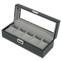 Handcrafted storage box perfect for up to 5 watches. This watch box for 5 is made from MDF and PU Leather with a beautiful finish. Clear glass shatter-proof lid which makes it a perfect display box.