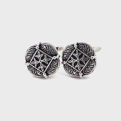 Embrace the dark allure of gothic sophistication with the Melmoth Cufflinks. Inspired by the eerie mystique of classic gothic literature, these cufflinks feature an intricate, brooding design that exudes timeless elegance. Finished in shiny rhodium plating.