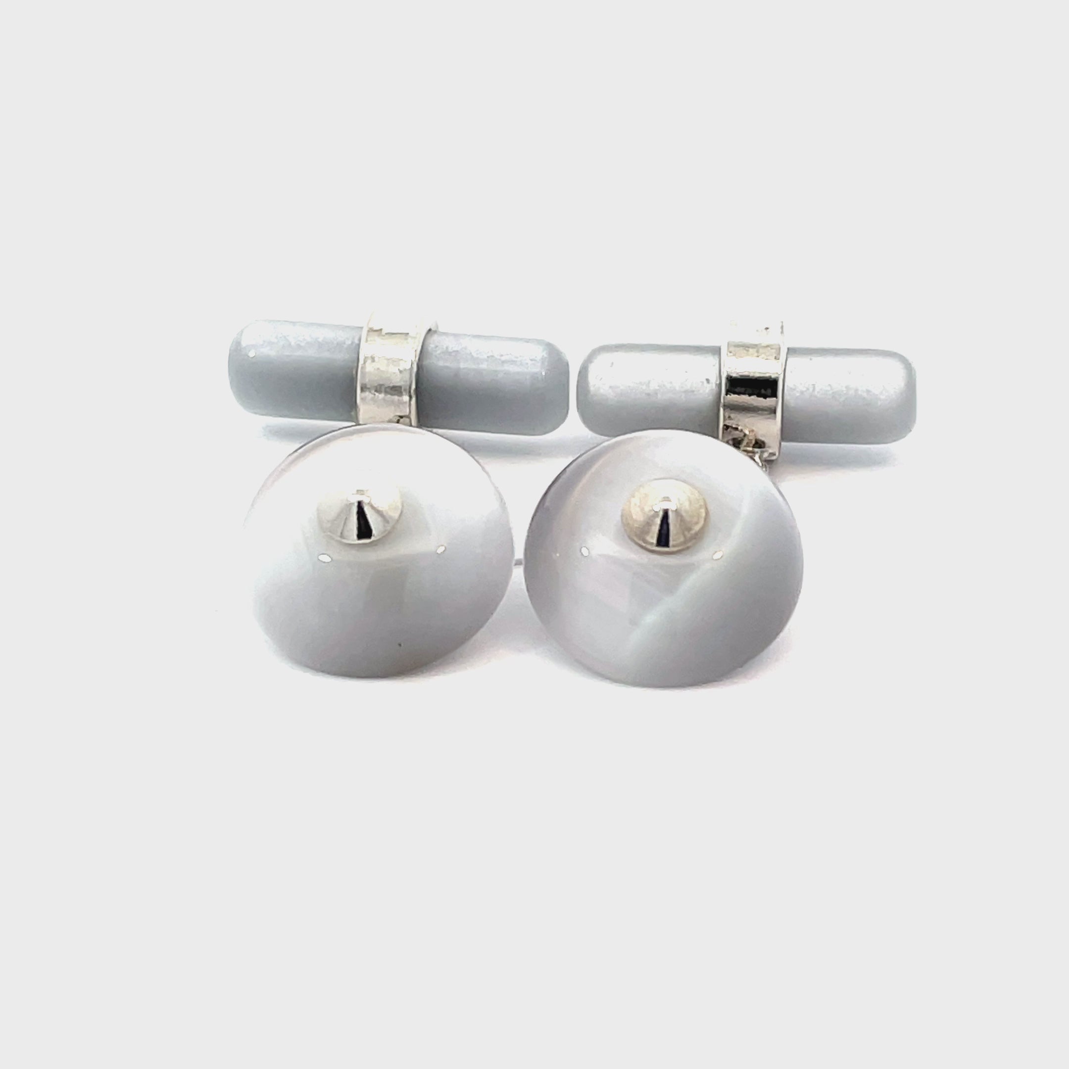 This pair of chain-fitting cufflinks feature a silver grey Catseye button with a silver colour chain, finished in high-quality rhodium plating. Whether accentuating a formal ensemble or adding refined detail to your attire, the Oracle Grey Cufflinks with Chain is the epitome of refined style, making a statement that is both classic and cutting-edge.
