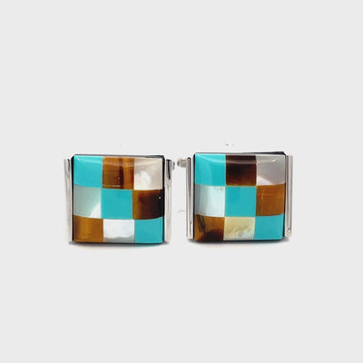 Patchwork Catseye Cufflinks: Brown, Aqua, White