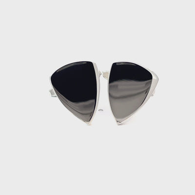 Embrace clean, contemporary style with these Plain Shield Rhodium Engravable Cufflinks. With a sleek shield-shaped design and a high-polish rhodium finish, they offer a bold yet refined look that complements any formal ensemble.