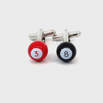 Rack up some style points with these playful Pool Balls Cufflinks. Featuring a vibrant red 3-ball and the classic black 8-ball, this mismatched pair is a fun nod to cue sports. A great gift for billiards fans or anyone who enjoys a cheeky twist on formalwear. Finished in enamel and shiny rhodium plating.