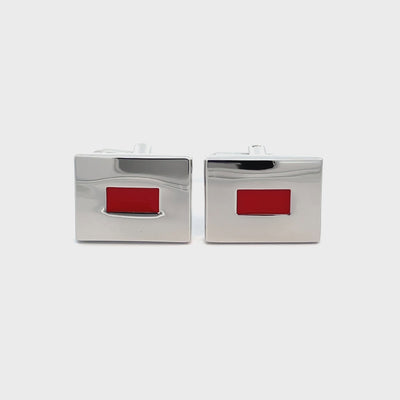 Deliver timeless style with these Red Letterbox Cufflinks. Featuring a polished silver-tone rectangular frame with a bold red enamel inset, these minimalist cufflinks add a refined pop of colour. Finished in shiny rhodium plating.