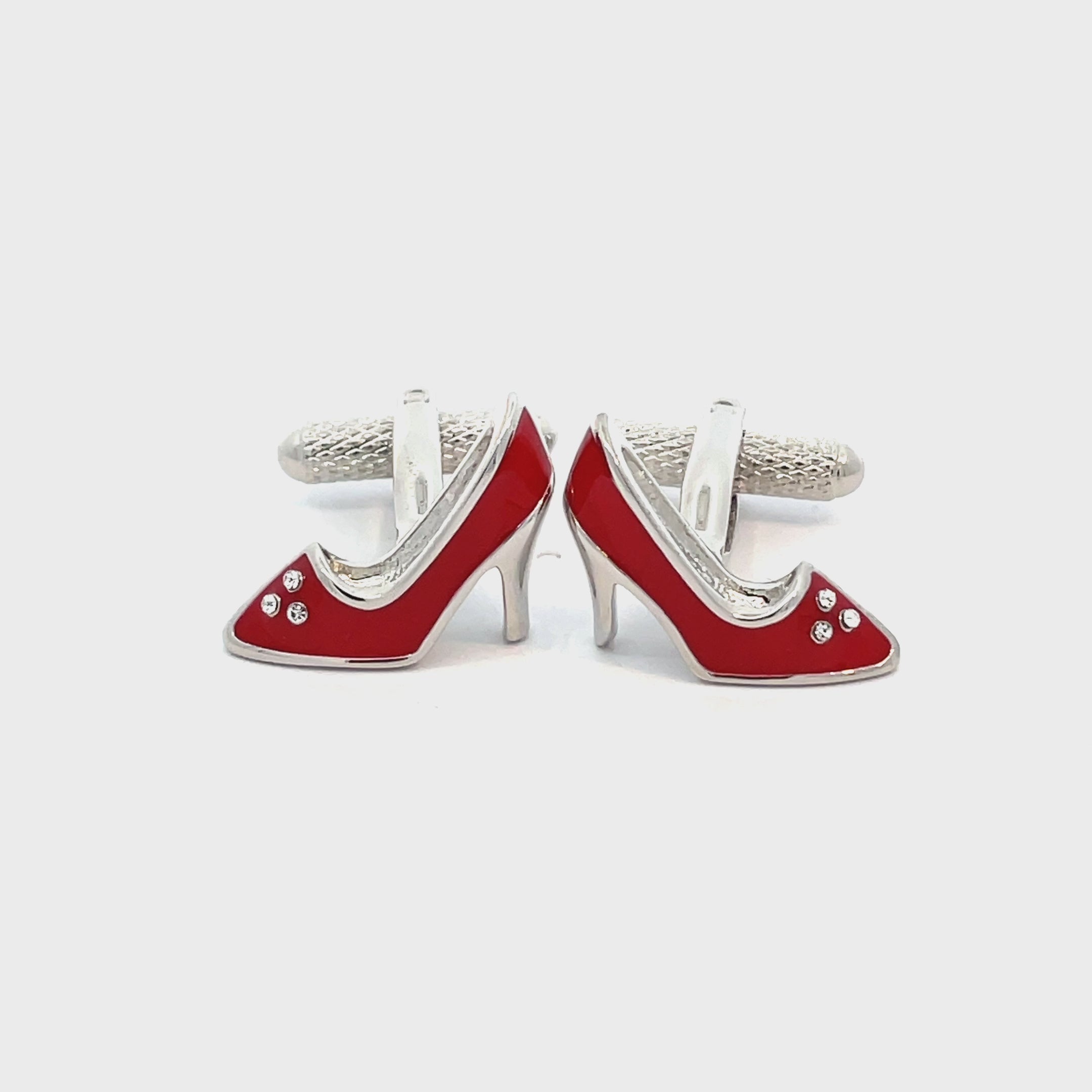 Step out in style with these dazzling Red Shoe Cufflinks with Crystals. Featuring elegant high heel designs in vibrant red enamel and accented with sparkling crystal details, these cufflinks are perfect for fashion lovers, statement-makers, or anyone looking to add a fabulous flair to their formalwear. Finished in enamel and shiny rhodium plating.