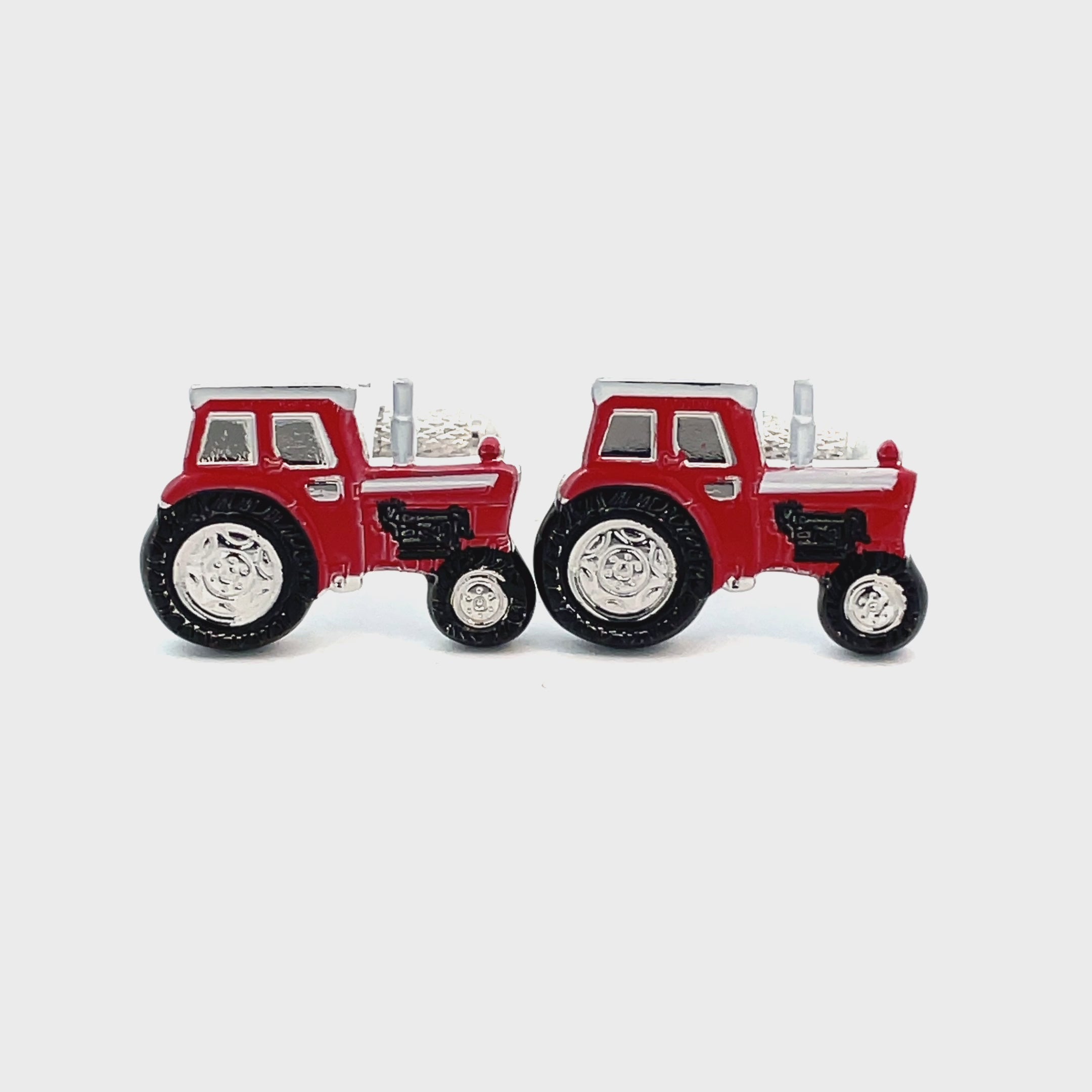 Plough through boring accessories with these Red Tractor Cufflinks. Featuring a vibrant white, red, and black enamel design with silver-tone detailing, these miniature farm machines are perfect for agricultural enthusiasts, country gents, or anyone ready to steer their style off the beaten path. Finished in shiny rhodium plating.