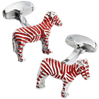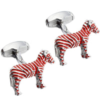 A pair of red cufflinks made from super-strong material guaranteed to last for years. These Red Zebra Cufflinks can be worn on ANY dress shirt with Shirt Cuff Adapters. Excellent addition to your unique cufflink collection and can be a perfect gift- be it for weddings, birthdays or business gifts. Make these novelty animals cufflinks yours today and be ready to turn heads whilst wearing one.