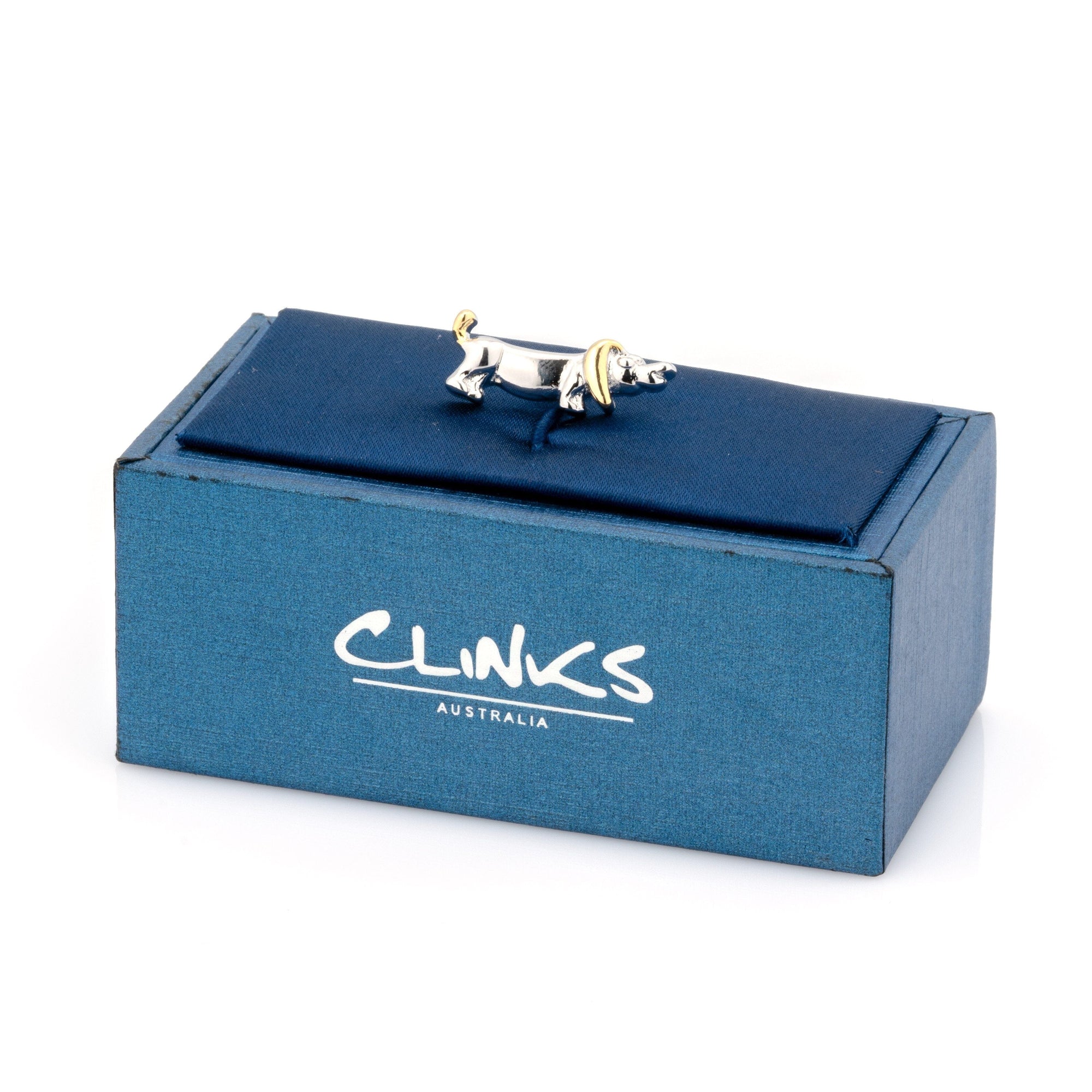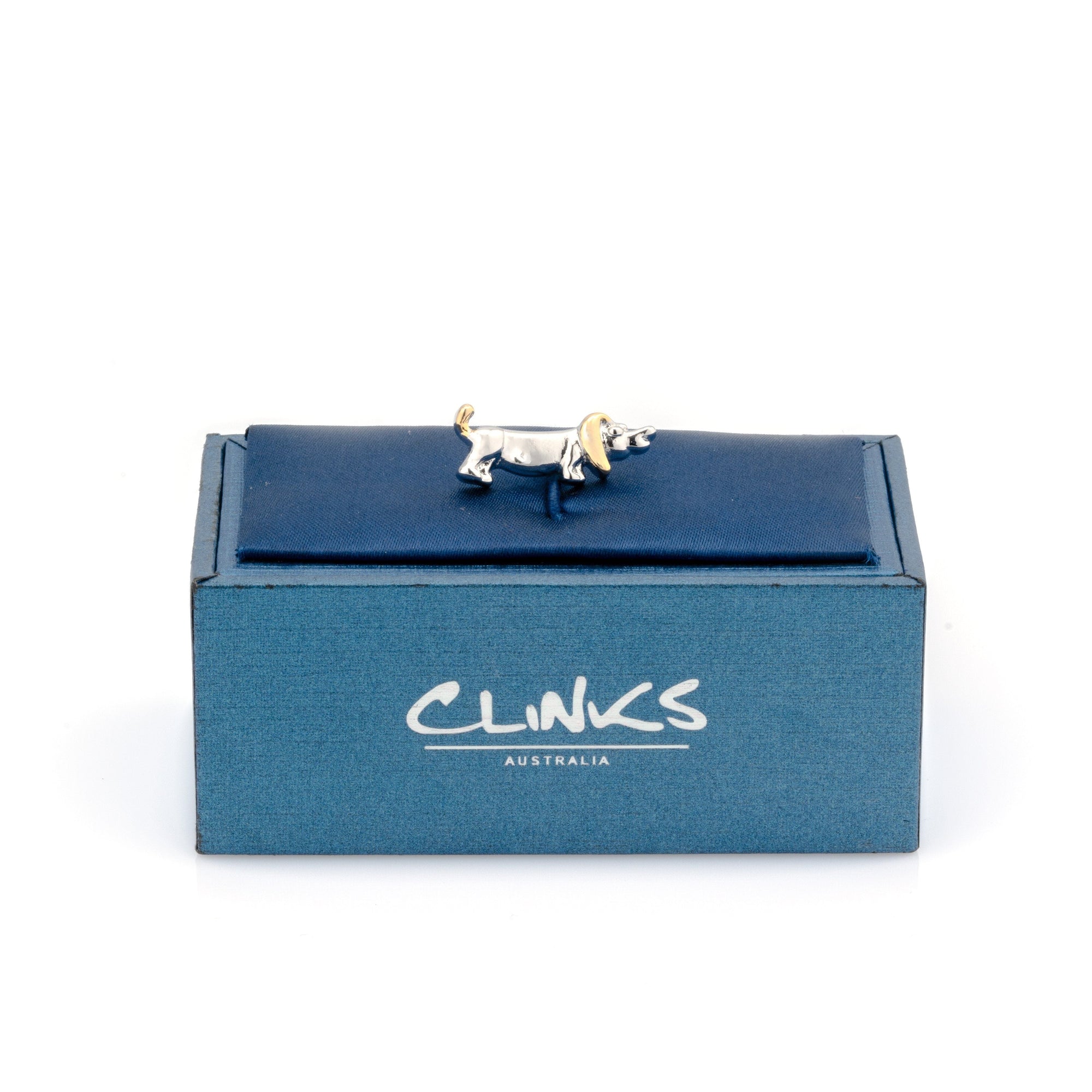 These outrageously cute sausage dog lapel pin will certainly become your next best friend. Also known as the Dachshund‎, these dogs are famous for their hunting past. This set is silver with gold details, and presented in a classy gift box. These make a great present for any dog lover.