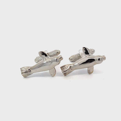 Make a splash with these charming Seal Cufflinks, designed for ocean lovers, marine biologists, and anyone who appreciates a bit of playful elegance. Crafted with a high-shine silver finish, these cufflinks capture the sleek silhouette of a seal mid-swim. Finished in shiny rhodium plating.