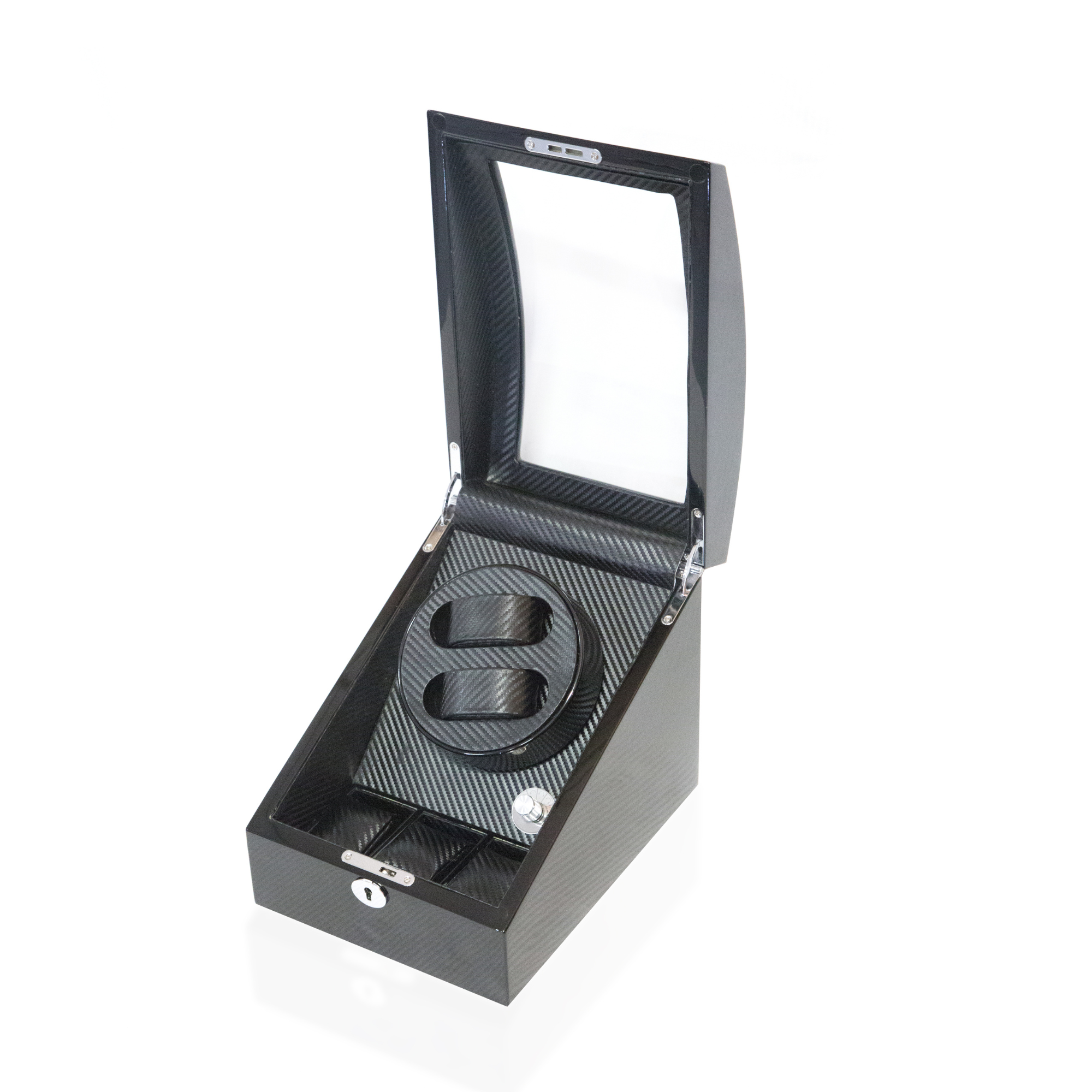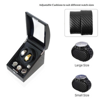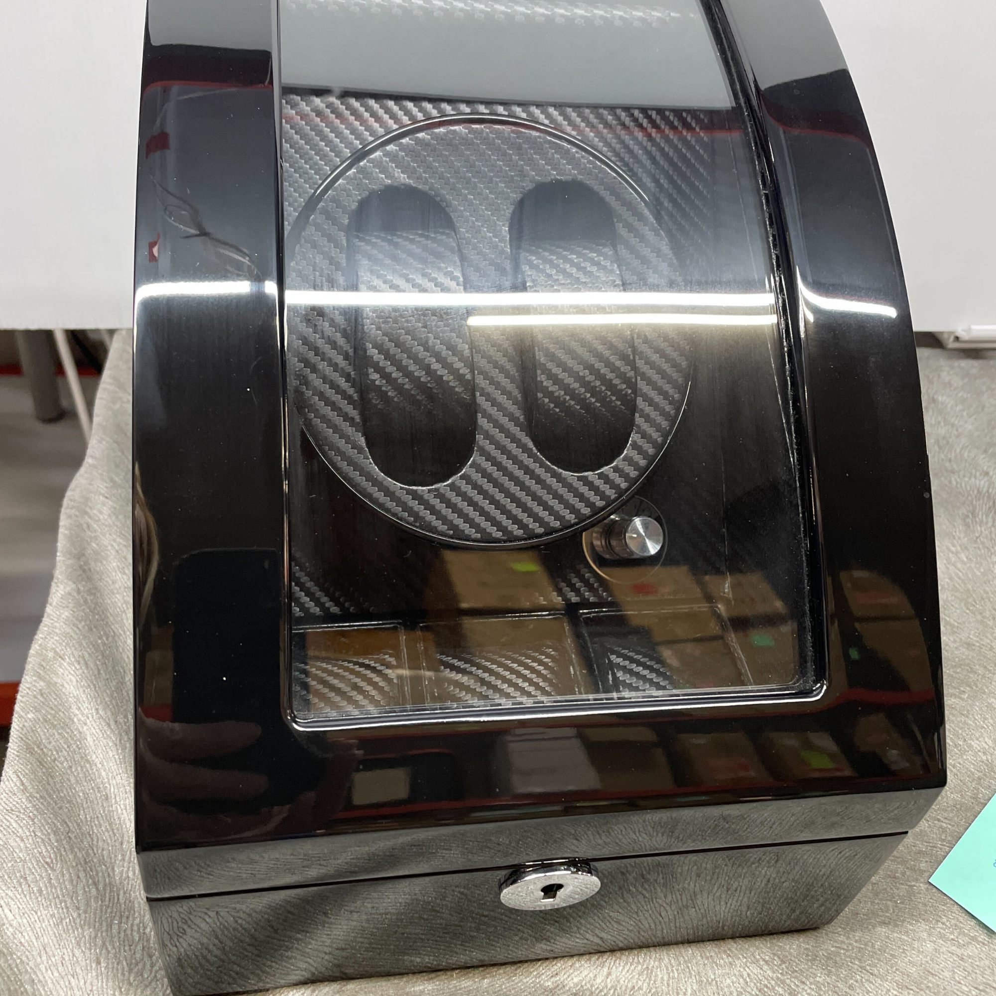 This mechanical box keeps your automatic watches wound and ready to wear. This box has a capacity for 2 watches on a winding rotorand storage space for an additional 3 watches.