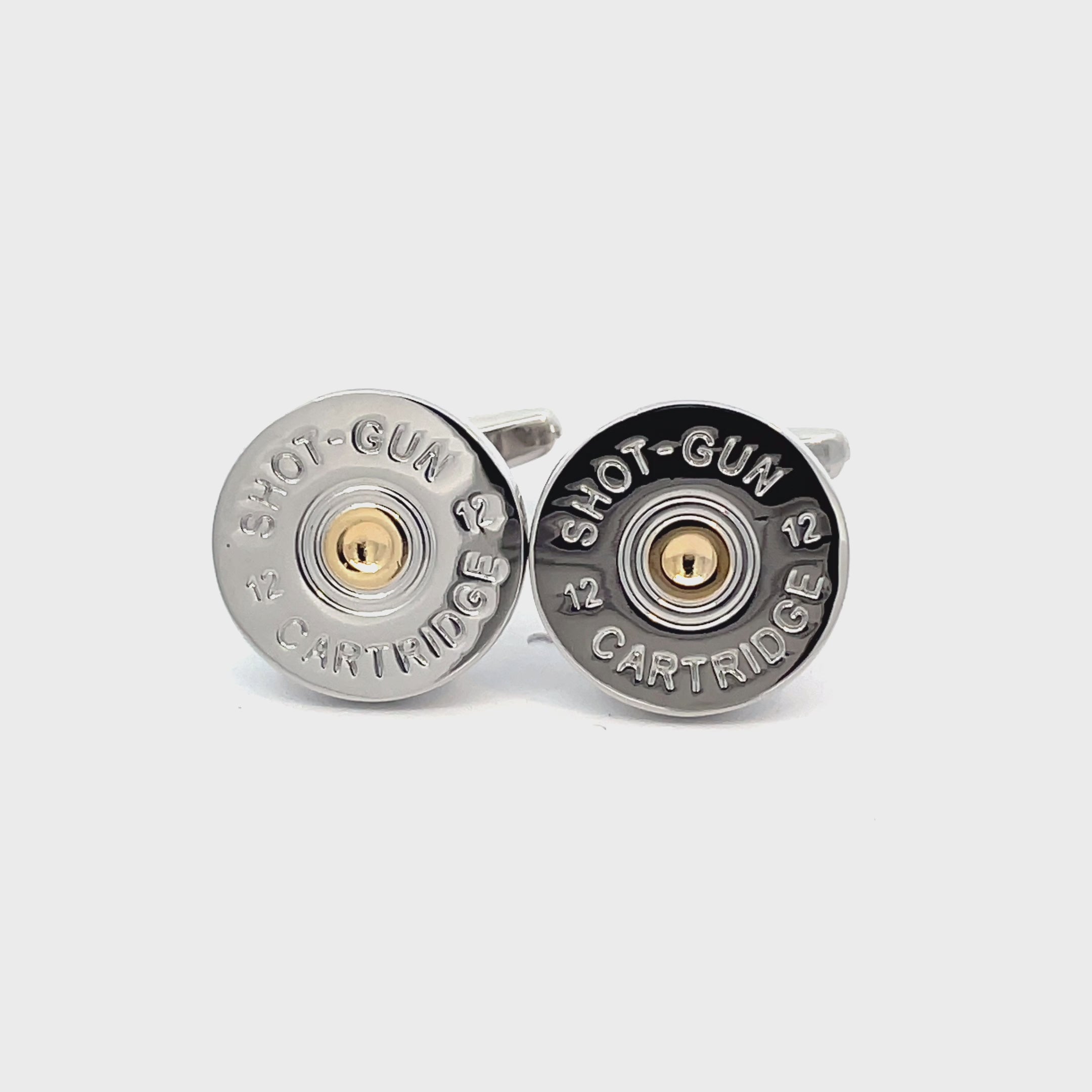 Make a bold statement with these Shotgun Cartridge Cap Cufflinks, styled to resemble a 12-gauge shell. A perfect accessory for hunters, shooters, or anyone with a taste for rugged elegance. Finished in shiny rhodium plating.