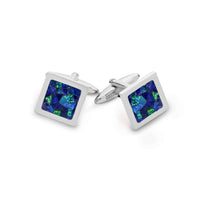 Australian Premium Square Opal Cufflinks (Blue Silver)