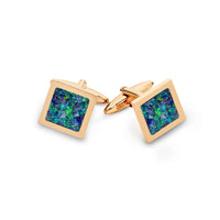 Australian Premium Square Opal Cufflinks (Green Rose Gold)