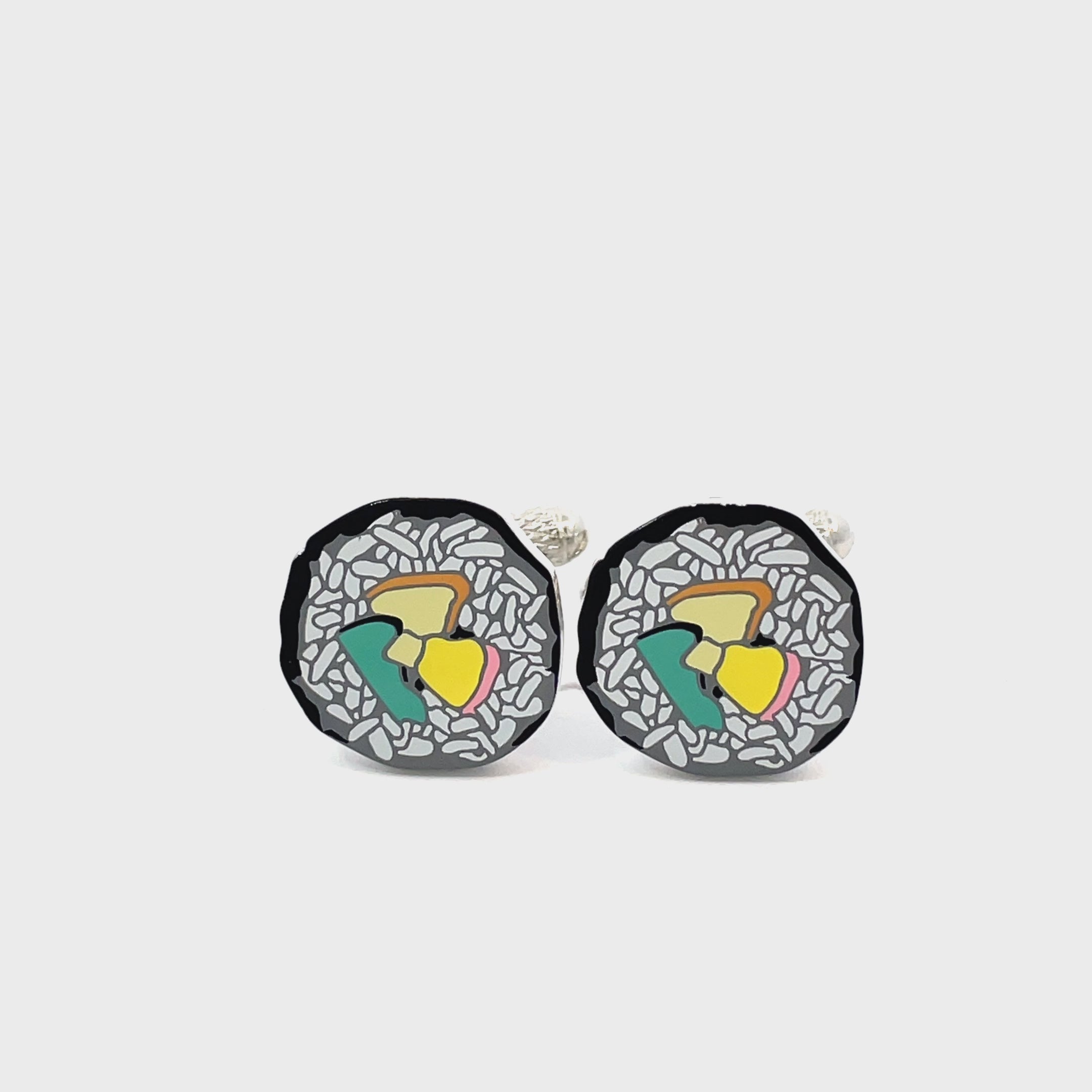 Serve up some fun style with these Sushi Cufflinks, featuring a colourful maki roll design with detailed enamel and a bold black outline. Perfect for foodies, sushi lovers, or anyone who wants a playful twist on formalwear. Finished in enamel and shiny rhodium plating.