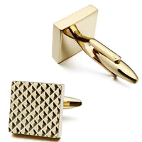 These elegant cufflinks elevate an ensemble for any occasion and are beautifully designed with the textured geometric pattern on the cufflink face. These are made to a high degree of quality, with rhodium plating and an eyecatching gold finish. These Textured Gold Square Cufflinks can be worn on ANY dress shirt with Shirt Cuff Adapters.