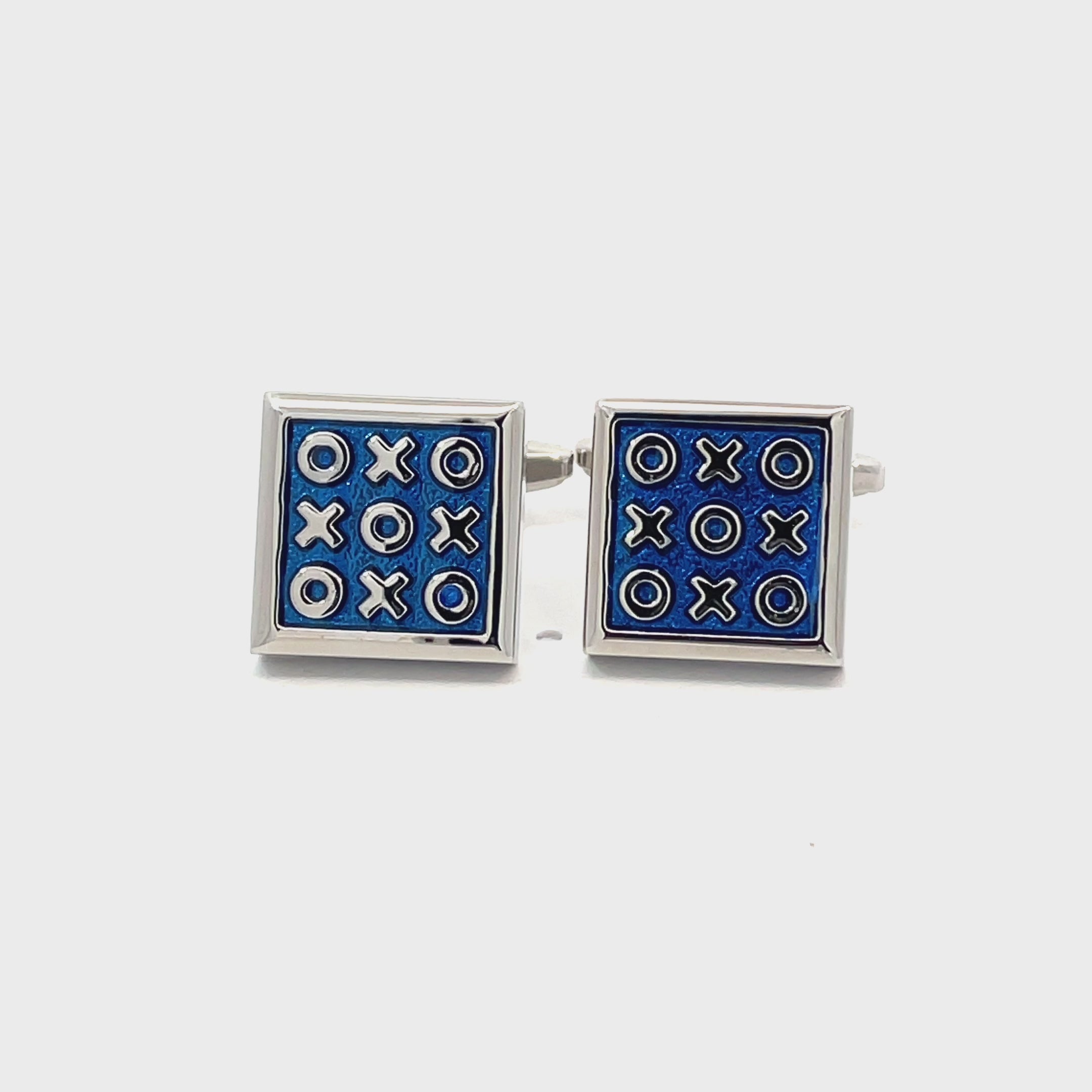 Add a playful twist to your formalwear with these Tic Tac Toe Finished Cufflinks. Set on a rich blue enamel background, the classic game board design features a finished round of Xs and Os for a smart and nostalgic touch. Finished in enamel and shiny rhodium plating.